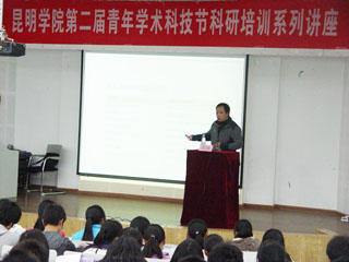 此次讲座,邀请到了云南大学工商管理与旅游管理学院副教授陈飙博士,他主讲的题目为“科研训练——从人文研究的目的说起”。 陈飙博士以他丰富的知识、浅显易懂的语言和严谨谦虚的学术态度,着重从大学的任务、科学与一般性知识、人文科学研究中的维度、研究方案设计与调查方法和学术论文的写作等几个方面作了一场内容丰富、事例典型、分析细致的科研训练学术讲座,使参加讲座的同学们深受教益。