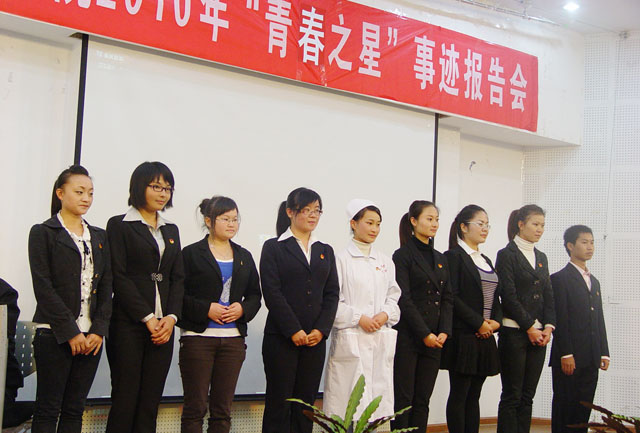 今年评出的“青春之星”组成了成长事迹报告团,成员分别是:“全面发展之星”陈泳旭、“青春励志之星”杨昆娥、“自强自立之星”李昶旭、“创业实践之星”李龙珍、“素质拓展之星”杨超、“技能特长之星”贝龙震、“创优突破之星”王利艳、“文艺特长之星”马严雪、“体育特长之星”自会。他们以各自的成长经历为背景,为同学们讲述了他们在不同领域学有所长、自强不息、自我实现、回报社会的先进事迹。“青春之星”们情感真挚、语言朴实、催人奋进,深深打动了聆听报告的青年学子们。报告会在激昂的团歌声中圆满结束。
