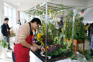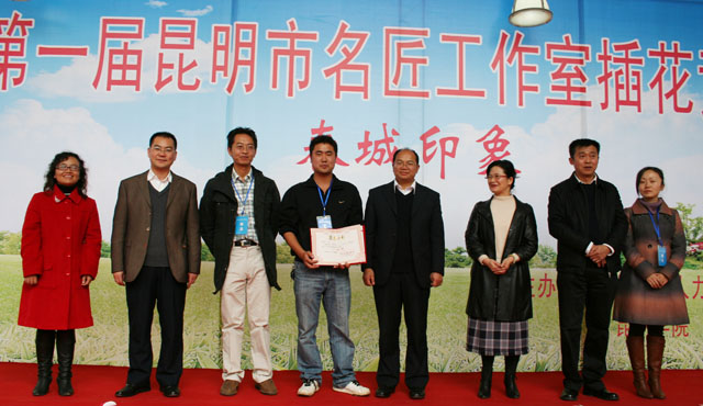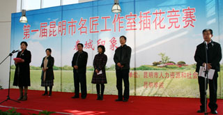 揭牌仪式后,在我院惟行楼展览大厅举行了“第一届昆明市名匠工作室插花技能竞赛”启动仪式。