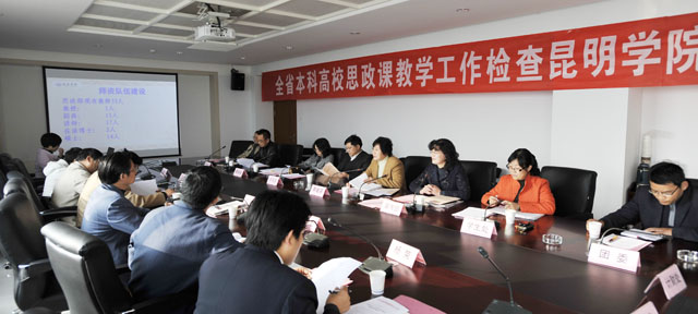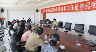 此次到我院的省本科高校思想政治理论课教学工作检查指导组是高校工委、教育厅抽调组成六个检查组中的第一检查指导组,由云南大学党委副书记张昌山教授带队,昆明理工大学、昆明医学院、曲靖师院、玉溪师院的王展飞教授、张瑞宏教授等6位专家成员参与其中工作。
