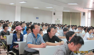 参加报告会的有物理科学与技术系的系主任戴祖诚、党总支副书记赵庆江、系副主任何松林及全系教师,物理科学与技术系300余人及其他系慕名而来的学生约400人认真听取了王海博士就第三代太阳能电池方面的学术报告。