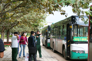 举国欢庆新中国成立六十一华诞,为使师生度过一个喜庆、祥和、安全、文明的节假日,方便师生出行,我院与昆明市公交公司第19车队进行友好协商,从9月30日下午起,昆明市公交公司第19车队调配118路公交车到我院洋浦新校园接送学生。