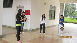 同学们用各种花色的气球装点游园活动现场,还准备了大量灯谜、蒙眼击鼓、水上穿针、障碍运球等益趣的活动供同学们参与。现场气氛非常热烈,很多同学驻足在灯谜前猜灯谜、参与趣味游戏,渐凉的天气丝毫没有影响大家的热情。从大家的笑容中可以看出,同学们乐在其中,2010级新生们在这个没能和家人团圆的金秋时节,并不感到孤单和寂寞,而是感受到物理科学与技术系大家庭式的温暖。
