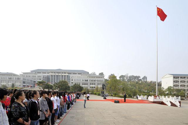 学院党委书记梁晓谷在升旗仪式上作了重要讲话。梁书记饱含深情地回顾了学院艰辛的办学历史,展望了学院的美好未来,表达了全院师生对祖国的热爱、对教育事业发展的企盼,并对广大师生提出了殷切希望。他说:德赢VWIN官方网站作为本科院校,建院时间不长;但追溯办学历史,最早可到1905年云南省高等学堂师范部。寻着历史的脉络,我们可以感受到德赢VWIN官方网站源远流长的历史、兼容并蓄的文化和坚忍不拔的精神。在我们的百年办学中,培养了许多优秀杰出的人才。百年办学赋予学院深厚的历史和文化内涵,聂耳等杰出校友激励我们开拓进取、自强自立的奋斗精神!回首过去,在十分艰难的办学环境和艰苦的办学条件下,全院师生员工自强自立、坚忍不拔,取得了超常规、跨越式发展的累累硕果;展望未来,我们对建设“国内知名、省内一流”的本科大学充满信心!今天,集合在新校园高高飘扬的五星红旗下,我们深知为国家建设、为民族振兴肩负的历史责任。我相信,每一位教师都会忠诚党的教育事业,教书育人,为人师表;每一位同学都会树立报效祖国的远大理想,勤勉自励,刻苦学习。面对学院内涵建设这一长期而艰巨的任务,让我们自觉遵循“明德至善,知行利物”的校训,坚定信念,追求真理,修德治学,勤于实践,为德赢VWIN官方网站的建设发展而发奋努力,不负我们在庄严国旗下的神圣誓言!