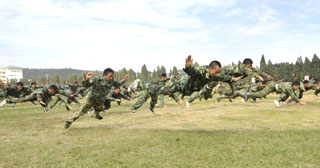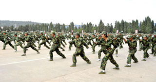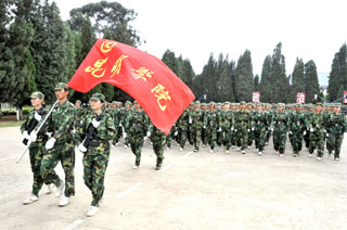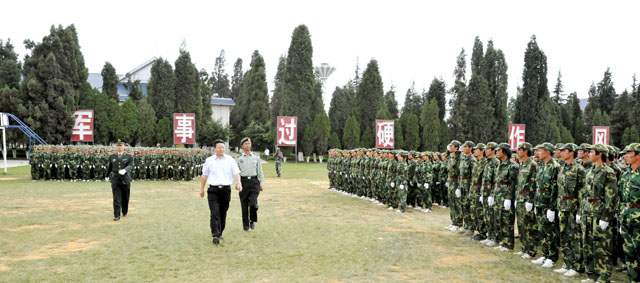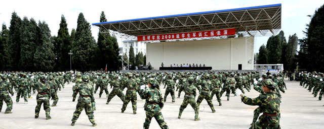 德赢VWIN官方网站由学生处组织的为期11天的2009级学生军训在昆明陆军学院圆满结束。7月12日,我院隆重举行2009级学生军训汇报表演,昆明陆军学院副院长赵勇岐大校、军训办主任朱平大校、副主任田景大校等,德赢VWIN官方网站党委梁晓谷书记、陈世波院长、孙勇副书记、熊晶副院长、刘海发副院长,以及学院相关部门及各教学系领导、辅导员等出席了学生军训汇报表演。汇报会由昆明陆军学院军训办主任朱平大校主持。
