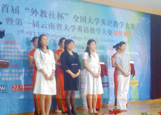 5月16日下午,为期两天的首届“外教社杯”全国大学英语教学大赛云南赛区比赛暨第一届云南省大学英语教学大赛在昆明圆满落幕。共有来自云南省28所高等院校的56名选手参赛。大赛设大学英语“综合课程”和“视听说课程”两个组别,活动旨在通过搭建全国性的英语教学竞赛平台,促进多媒体技术应用下的大学英语教学的方法和手段,为广大高校英语教师提供观摩、交流和学习的机会。