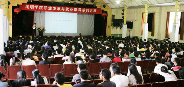 为加强学生职业生涯规划与就业指导,促进毕业生顺利就业与自主创业,学院聘请了20名省内“大学生职业发展高级指导师”。4月16日下午,云南省文化厅副厅长花泽飞高级指导师在我院昆师路校区礼堂主讲德赢VWIN官方网站“大学生职业发展与就业指导系列讲座”第二讲《人生创业与选择》。学院熊晶副院长出席讲座并作讲话,各教学系分管就业工作的领导、辅导员、2010届毕业生800余人参加。讲座由学院招生就业处副处长杨跃主持。