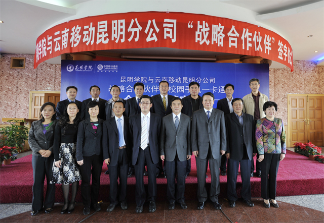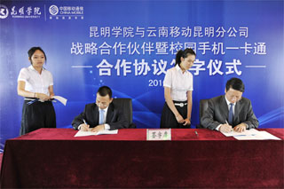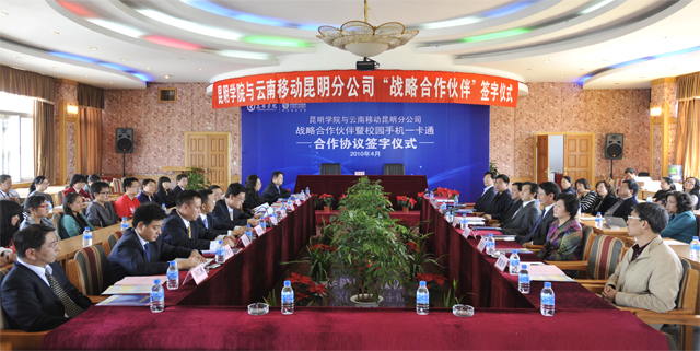 4月28日下午,德赢VWIN官方网站与云南移动昆明分公司“战略合作伙伴”暨校园手机一卡通签字仪式在我院人民西路校区3号教学楼6楼多功能厅举行。