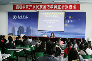 我院为全面贯彻落实省委宣传部《关于组织全省民族团结宣讲活动的通知》精神,根据《中共云南省委高校工委办公室关于协助开展全省民族团结宣讲活动的通知》(云高工办[2010]9号)的安排,结合学院实际,诚邀省委宣传部宣讲团成员、云南省民族事务委员会政策法规处杨剑波处长于4月30日下午到我院作“德赢VWIN官方网站民族团结教育宣讲报告会”。报告会由学院党委宣传部张立新部长主持,学院组织部、宣传部、统战部、学生处、团委、各相关教学系的党总支书记(副书记)、辅导员和学生代表聆听了报告。