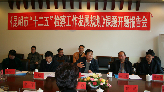 4月2日下午,德赢VWIN官方网站与昆明市人民检察院联合编制《昆明市“十二五”检察工作发展规划》课题经过前期的调研和准备,开题报告会在滇池路怡景园酒店小会议厅举行。开题报告会由政法系副主任何杰副教授主持。