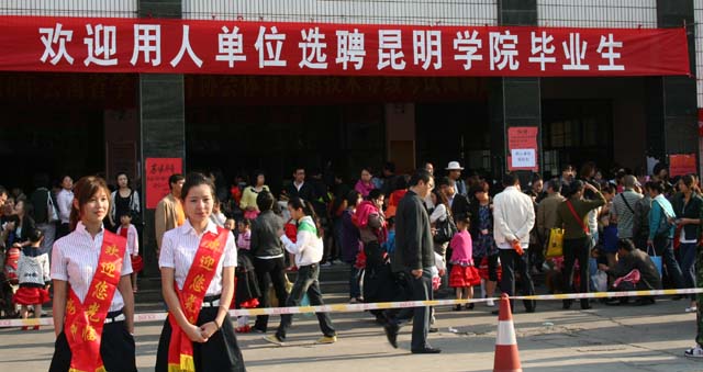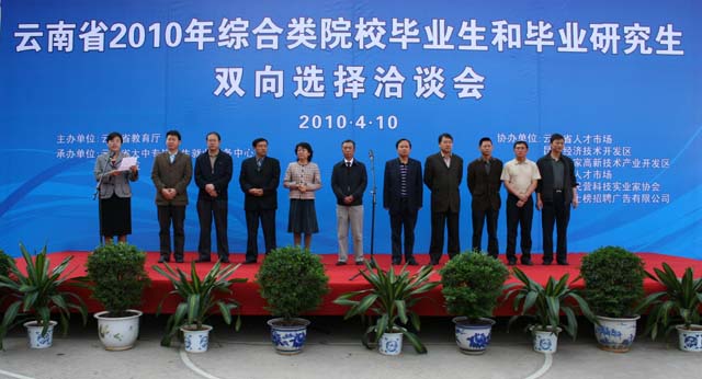 为搭建大学毕业生双向选择交流平台,和衷共济促高校毕业生顺利就业,4月10日上午,由云南省教育厅主办、德赢VWIN官方网站与云南省大中专毕业生就业服务中心共同承办的“云南省2010年综合类院校毕业生和毕业研究生双向选择洽谈会”在德赢VWIN官方网站人民西路校区隆重举行。