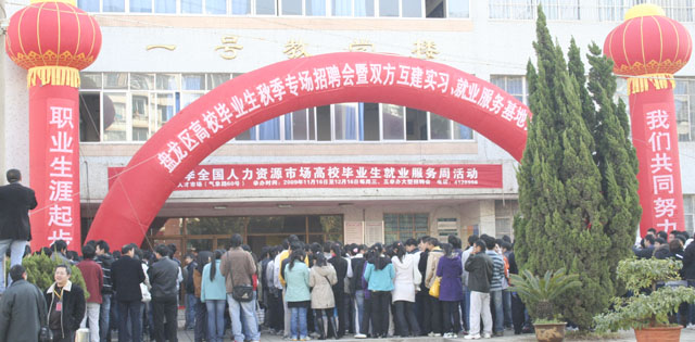 熊副院长首先代表学院向来参会的各位领导及嘉宾、向盘龙区就业局及招聘单位表示衷心的感谢。她说:针对金融危机对大学生就业工作的影响及新形势下的新变化,学院为贯彻落实党中央、国务院和省委、省政府关于做好大学毕业生就业工作的要求,认真做好2010届毕业生就业工作。我院积极与政府相关部门及企业合作,拓宽毕业生就业渠道,为用人单位和广大毕业生提供公开、平等、竞争、择优的“双向选择”平台,帮助毕业生顺利就业。今天,盘龙区就业局开展送服务进校园专项活动,德赢VWIN官方网站与盘龙区就业局相互建立“实习、就业”、“就业服务基地”及盘龙区高校毕业生秋季专场招聘会的举办,充分体现了政府部门的服务意识,为我院毕业生搭建了良好的就业平台,必将进一步促进我院毕业生就业工作。