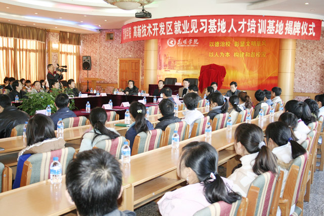 我院与昆明国家高新技术产业开发区建立“德赢VWIN官方网站就业见习基地”和“昆明国家高新技术产业开发区人才培训基地”,并于12月9日在我院人民西路校区举行合作协议签字和揭牌仪式。我院党委书记梁晓谷、院长陈世波,副院长罗明东、刘海发等领导和昆明国家高新技术产业开发区党工委副书记逯康麟、昆明市教育局党委副书记姚宏、云南省教育厅学生处处长卢明、云南省农业厅劳动力办公室主任陈勇等领导、嘉宾出席仪式。合作协议签字和揭牌仪式由我院副院长刘海发主持。