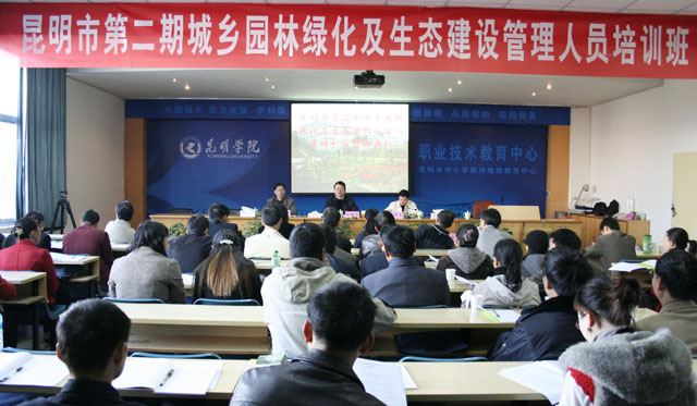 由德赢VWIN官方网站与昆明市园林绿化局联合举办的“昆明市城乡园林绿化及生态建设管理人员培训班”第二期培训开班仪式,于12月14日在我院昆师路校区举行。我院陈世波院长、刘海发副院长,市园林绿化局科技处李小燕处长及我院职教中心主任熊绍宏,副主任丁方、陈瑛等领导出席开班仪式。开班仪式由我院刘海发副院长主持。 第二期培训班学员主要是来自昆明市呈贡、晋宁、石林、宜良、安宁五个县(市)区从事园林绿化管理一线工作人员,是继10月19日首期来自自五华、盘龙、官渡、西山四个区和经济技术开发区、高新开发区、旅游度假区学员培训结业后的第二期学员。