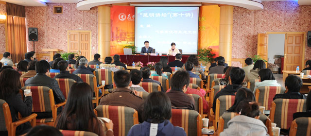 熊晶副院长在最后点评总结时说,宋英杰老师精彩生动的演讲,受到大家的热烈欢迎与多人争相提问,为“昆明讲坛”系列讲座的举办增添了光彩,也为下一讲学院开展环境保护和滇池污染治理研究专题做好了专业介绍与背景知识铺垫。她说胡锦涛总书记在今年出席联合国气候变化峰会开幕式时发表的《携手应对气候变化挑战》重要讲话,强调中国高度重视和积极推进以人为本、全面协调可持续的科学发展,明确提出了建设生态文明的重大战略任务,指出要坚持节约资源和保护环境的基本国策、坚持走可持续发展的道路,在加快建设资源节约型、环境友好型社会和建设创新型国家的进程中不断为应对气候变化做出贡献。今天我院邀请宋老师来作《气候变化与生态文明》专题演讲,就是为了让我院师生准确深刻地理解国家生态环保政策,深刻了解全球气候变化所面临的挑战与我们共同的责任,积极加入到云南省、昆明市的生态环保建设研究与滇池污染治理工作中,以实际行动学习实践科学发展观。