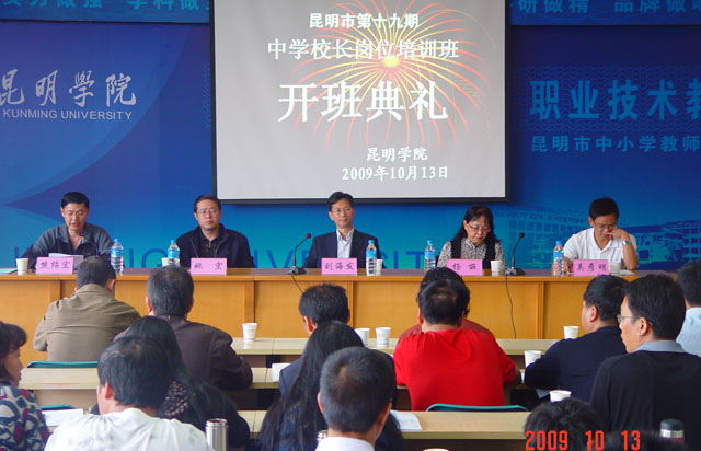 10月13日上午,昆明市第十九期中学校长岗位培训班在德赢VWIN官方网站昆师路校区举行了开班典礼。云南省教育厅师范处杨丽处长、昆明市教育局姚宏副书记、副局长、师训高教处吴彦明处长、德赢VWIN官方网站刘海发副院长以及职业技术教育中心的各位领导出席了开班典礼。来自昆明市的76位、德宏州潞西市的4位共80位中学校长(书记)将在我院参加为期三个月的脱产阶段学习。