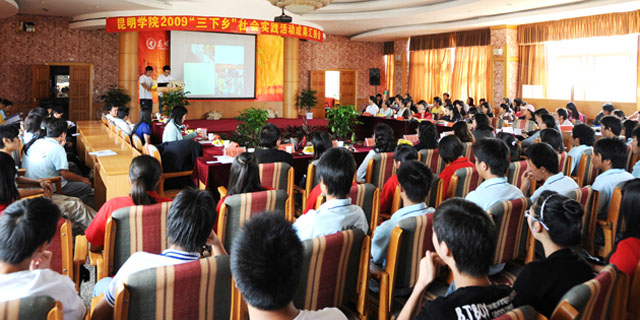 10月16日下午,院团委2009年“三下乡”社会实践活动成果汇报会在人民西路校区举行。团市委机关党总支书记王彦彦,团市委学校部部长栾丽华,学院党委宣传部张立新部长,教务处郝旭霞处长,机关党总支梁艳萍书记,保卫处方永昆副处长,学生处罗进副处长等出席了汇报会,会议由团委书记何昊宸主持。 我院本次“三下乡”根据党委宣传部、学生处、院团委联发的《关于开展德赢VWIN官方网站2009年大学生暑期社会实践活动的通知》的文件精神,于7月上旬正式启动,历时7天。活动以“高扬爱国主义旗帜、服务科学发展大业”为主题,本着“讲求实效、就进就便、针对性强、辐射面广、安全第一”的原则,按照“全面动员、普遍参与、点面结合、重点突破”的要求,以系为单位,结合本系专业特色,学院共组织了6支志愿服务队到昆明周边县市区基层农村开展社会实践与志愿服务活动。 汇报会上,来自自机系、旅游系、生科系、经济系、计网系、政法系的老师和学生代表,分别对此次“三下乡”社会实践活动作了汇报与成果展示。各汇报系结合系部的专业特色,开展的实践活动形式多样、成果丰富,能够用理论指导实践,用调研成果服务农村、服务社会、服务昆明的实践活动。 党委宣传部部长张立新代表学院活动领导小组讲话肯定:6个系的汇报都反映出了此次社会实践主题突出,准备充分,各系领导和相关老师高度重视,积极支持,责任心强,有的亲自带领学生到农村指导调研服务;各系结合专业特长开展科学发展观政策、普法、科普、环保宣传,进行家电维修、爱心捐赠、社会调研、参观访问、劳动体验、文体活动等,既充分认识社会和乡情,也找正自己的角色位置,以我所能服务社会,为今后发展积累经验,为学院服务地方经济发展,锻炼培养了师生干部,宣传展示了学院办学实力和育人水平,与地方建立良好合作关系,做出实绩。衷心感谢团市委领导和相关处室领导的关心支持,衷心感谢6支小分队的系领导、老师、同学的艰苦努力和辛勤奉献。 会上,团市委机关党总支书记王彦彦作了重要讲话。王书记对我院的“三下乡”社会实践工作给予了充分肯定,她指出,我院的“三下乡”社会实践活动准备充分、成果丰富,特别是通过这次活动让同学们了解了社情民意,倾听到了基层人民群众的心声,找到了奋斗和努力的方向,确实增强大学生服务社会、报效祖国责任感和使命感,发现问题、分析问题、并解决问题的能力得到了进一步的提高,砥砺了品格、磨练了意志、收获了真知、陶冶了情操、树立了理想。这次社会实践活动既是一次同学们了解社会、服务社会的尝试,更是一次理论与实践相结合的马克思主义的第二课堂。 此次“三下乡”社会实践活动是学院团委认真学习贯彻十七大精神,深入开展学习实践的科学发展观活动的重要举措,也是加强和改进大学生思想政治教育、帮助大学生在实践中深刻理解科学发展观重大意义、发挥大学生人才智力优势、服务新农村建设的有效途径。相信此次活动的开展,将为大学生体验农村、融入社会搭建平台,为我院团学工作的不断推进和现代新昆明建设贡献力量。