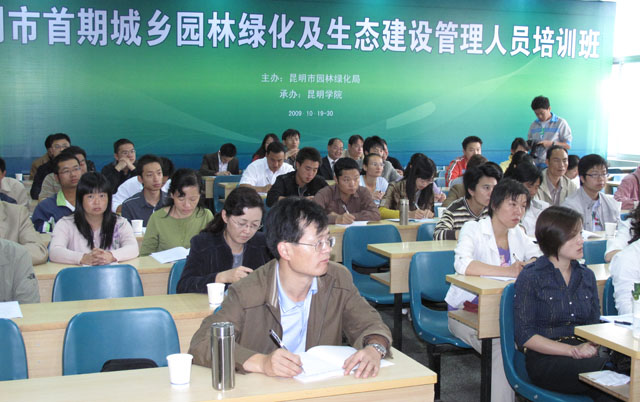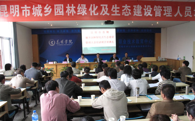 根据昆明市委、市政府提出“建设生态昆明绿色家园”的要求及昆明市“2009年城乡园林绿化及生态建设工作现场会”精神,经市政府批准,由德赢VWIN官方网站与昆明市园林绿化局联合举办的“昆明市城乡园林绿化及生态建设管理人员培训班”开班仪式,于10月19日在我院昆师路校区举行。我院党委书记梁晓谷,昆明市政府副秘书长周峰越,市园林绿化局局长张家仁、副局长汪天祥等领导出席开班仪式。开班仪式由我院刘海发副院长主持。 参加本次开班仪式的学员有来自五华、盘龙、官渡、西山四个区和经济技术开发区、高新开发区、旅游度假区60余人从事林绿化管理一线工作人员。该培训将分期分批对全市范围内从事园林绿化建设和管理部门的企、事业从业人员进行短期与长期相结合的基础业务培训。 培训旨在努力提升我市城乡园林绿化管理人员的业务素质和管理水平,适应我市“建设生态昆明、绿色家园”的目标要求,把昆明建设成为“森林式、园林化、环保型、可持续发展的高原湖滨生态城市”。这既是市政府贯彻落实科学发展观的具体要求,也是我院发挥教学科研优势,积极为昆明谋求经济社会跨越大发展做贡献的现实需要。 梁书记出席开班仪式并作讲话。梁书记从贯彻昆明市2009年城乡园林绿化及生态建设工作现场会的精神、昆明市城乡园林绿化的基本情况和举办本次培训班的背景等方面,阐述了举办城乡园林绿化及生态建设管理人员培训的重要意义和作用。同时,梁书记向学员们提出了三点希望:一是希望认真对待培训工作,带着问题、善于思考,安心、认真听好每一堂课;二是希望严格学习纪律,做到学习有考核、管理有制度;三是希望用学到的理论指导实际工作,在岗位实践中不断向市园林绿化局和我院职教中心反馈宝贵建议,提出希望教师教些什么?怎么教的要求。 周副秘书长受陈勇副市长的委托代表市政府向首期城乡园林绿化及生态建设管理人员培训开班表示祝贺。他强调:今年昆明市城乡园林绿化及生态建设的主要任务是突出总量扩张和质量提升“两个重点”。他希望各位学员珍惜学习机会,培训结束后回到工作岗位上,一定要按市委、市政府的要求,按照昆明市城乡园林绿化的总体规划和工作部署,精心组织,真抓实干,充分发挥园林绿化管理人员的骨干作用为全市经济社会又好又快发展作出新的更大的贡献! 开班仪式上,张局长从我市园林绿化发展状况和个人体会等方面谈了加强城乡园林绿化及生态建设管理人员培训的必要性。他透露,今后昆明市的每一名园林绿化管理人员都必须经过培训考核,持证上岗。 开班仪式结束后,与会领导和全体受训学员合影留念。