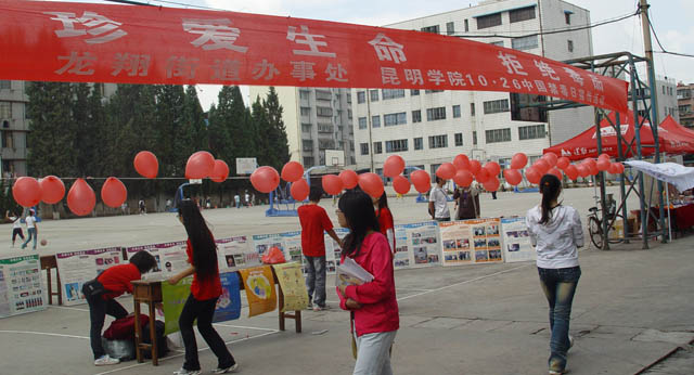 10月26日为中国禁毒日。为了普及毒品和艾滋病预防知识,使我院学生充分了解毒品和艾滋病的危害,树立自觉远离毒品、抵制毒品的意识,围绕“珍爱生命、拒绝毒品”这一主题,由学院团委、保卫处、龙翔街道办事处共同联合举办的“10.26中国禁毒日”禁毒宣传教育活动于10月23日、26日分别在昆师路校区、人民西路校区陆续开展。