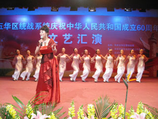 9月上旬,统战人士参加的统战理论征文比赛顺利进行,共收集统战理论征文46篇,其中我院有23篇,占50%,刘方乐等10余位老师的论文分别获一、二、三等奖。 9月18日至23日,书画展在美术系展室展出。书画展共收集参展书法作品31幅,我院6幅,占19%;绘画作品56幅,我院18幅,占32%;摄影作品32幅,我院6幅,占19%。经五华区聘请省、市书画、摄影艺术家和理论工作者参加评审,最终我院获得奖项如下:书法作品二、三等奖2幅;绘画作品一、二、三等奖5幅;摄影作品二、三等奖3幅。 9月23日下午,由我院承办的五华区统战系统庆祝新中国成立60周年系列活动以文艺汇演在昆师路礼堂举行。演出前五华区委统战部对参加书画展、统战理论征文活动获奖代表与优秀组织奖获奖单位颁奖。演出会上,我院选派参加的音乐系大合唱《没有共产党就没有新中国》、孙兰娟女声独唱《为祖国干杯》、学前系舞蹈《红扇》、侨台联京剧《红梅赞》等节目在演出中好评如潮,使整台演出形式丰富、效果出彩。我院党委副书记李媛芬、宣传部部长张立新、统战部部长张云权、90余位教工统战人士等代表学院参加了文艺演出等活动。