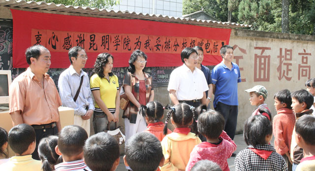 9月11日上午, 在罗明东副院长的亲自率领下,院办杨茂泉副主任、资产管理与设备处包兴副处长等一行7人代表德赢VWIN官方网站向昆明市西山区谷律乡中心学校进行了电脑捐赠。捐赠仪式在谷律乡中心学校妥派分校举行。此次捐赠活动是学院提出的“大学不仅是教学、科研的基地,更应该是服务社会、回报社会的重要窗口”这一办学宗旨的体现。