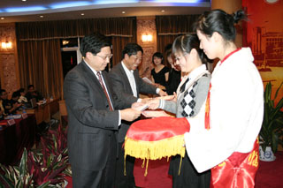 按大赛规则,各系积极认真准备、选拔推荐出21位参赛选手。经过组委会及专家对书面作品进行评审,评选出高飞等7位选手参加当晚角逐。在主持人的主持引导下,7位选手以PPT形式现场作品展示,评委现场提问、选手即兴作答。经过一次次出色的展示,机智地对答,专家的精彩点评,最终来自自动控制与机械工程系的高飞同学以《我的未来我做主》为题夺得94.94分的高分,荣获第一名。罗明东副院长,教育厅方伟主任、周舟副主任等领导分别为获奖选手颁,并合影留念。