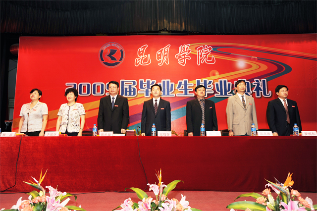 我院2009届毕业生毕业典礼于7月15日在昆师路校区、新迎路校区分4个场次举行,共有5个本科专业921名本科毕业生和52个专科专业的2186名专科生(共计3107名毕业生)参加了毕业典礼。院领导和各职能部门领导分别出席了各会场典礼。各教学系部领导及辅导员、班主任、任课教师代表也参加了毕业典礼。