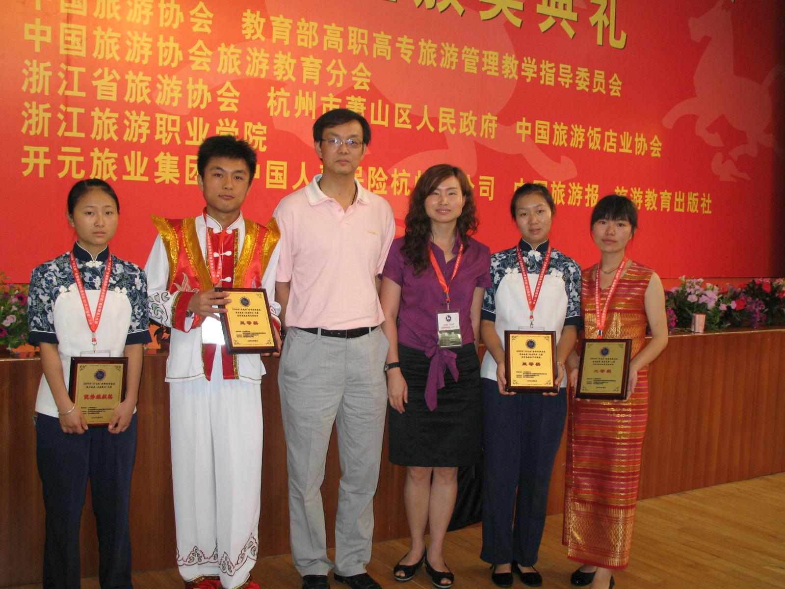 本次大赛是我国旅游教育迄今为止规模最大、项目最多、覆盖面最广、规格最高的一次技能大赛,共有来自全国24个省市,134支代表队,1190名选手参加了角逐。为了参加此次大赛,我院领导高度重视,赛前进行了总体安排和动员。学院罗明东副院长、教务处郝旭霞处长以及旅游系窦志萍主任、杨璐书记亲临训练现场指导,给予了选手极大的支持和勉励。旅游系经过周密部署和精心组织,组成了以骨干教师田芙蓉和刘红为教练,李鹏和唐忠明为专业英语辅导老师、4名学生为参赛选手的代表队,进行了为期一个月的赛前紧张训练,在有上海师范大学、华侨大学、北京联合大学、桂林旅游高等专科学校等强校参赛的情况下,德赢官网4名选手全数获奖,为我院赢得了荣誉。
