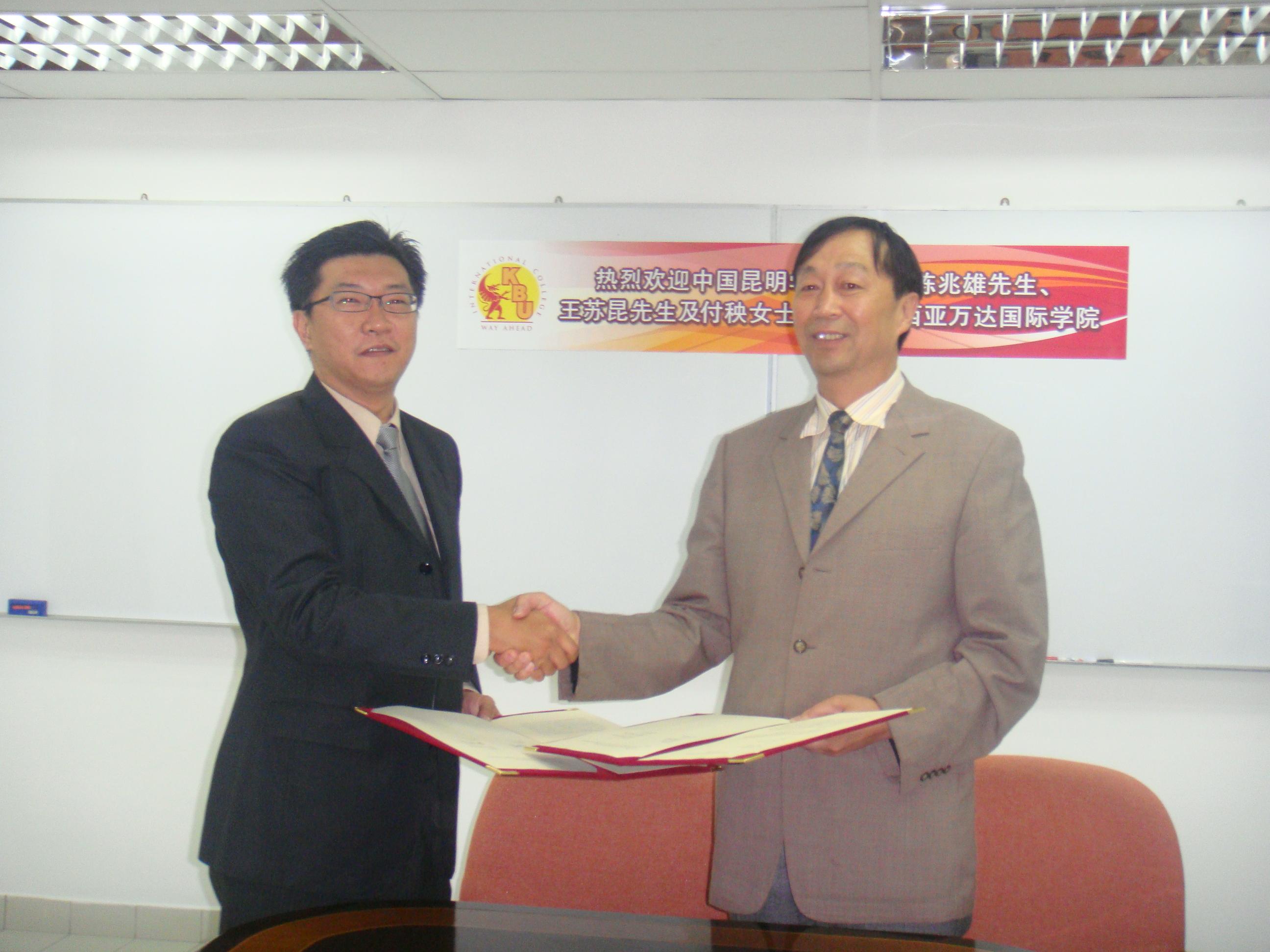 应马来西亚万达国际学院院长徐云彪先生的邀请,德赢VWIN官方网站派出副院长陈兆雄、成人教育处副处长王苏昆及对外交流合作处工作人员一行3人的出访团,于5月17日——5月22日对马来西亚万达国际学院进行了友好访问。陈副院长此次出访,考察了该院校的办学条件、课程设置、教学计划等相关情况,并就进一步加强我院高等教育领域的对外交流合作,特别是两校间合作办学的具体问题进行了交流、商讨,签订了合作办学的协议书,受到对方的热情款待。