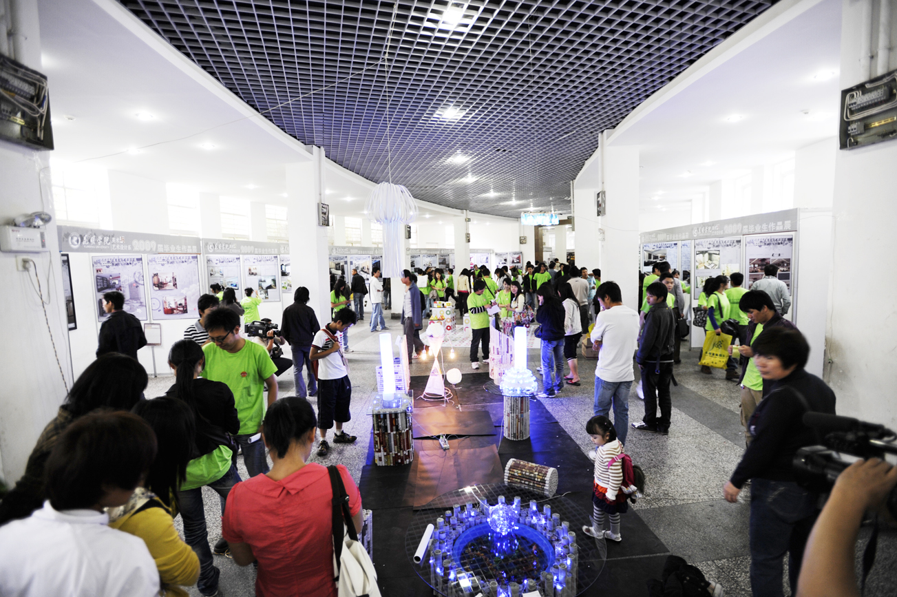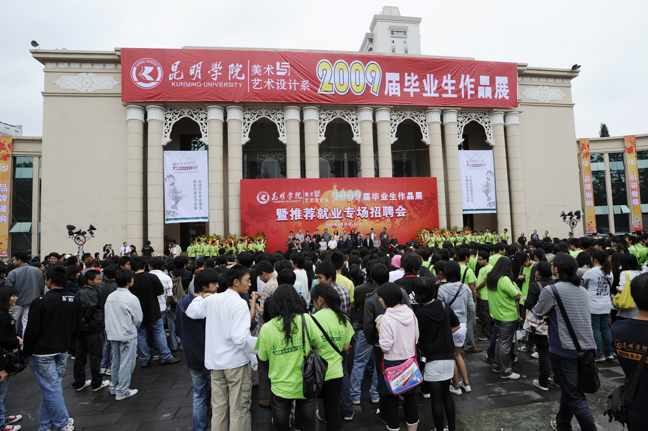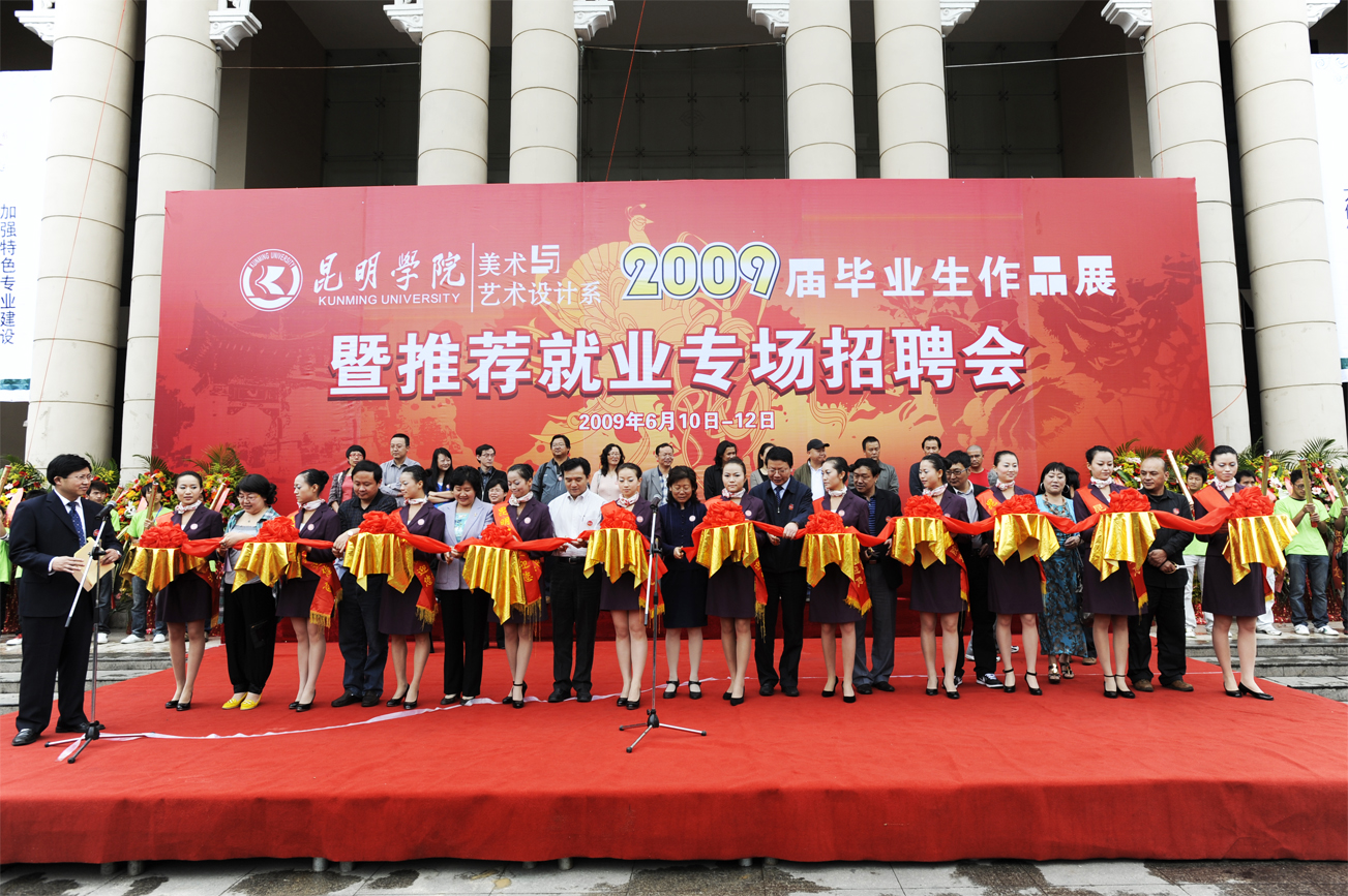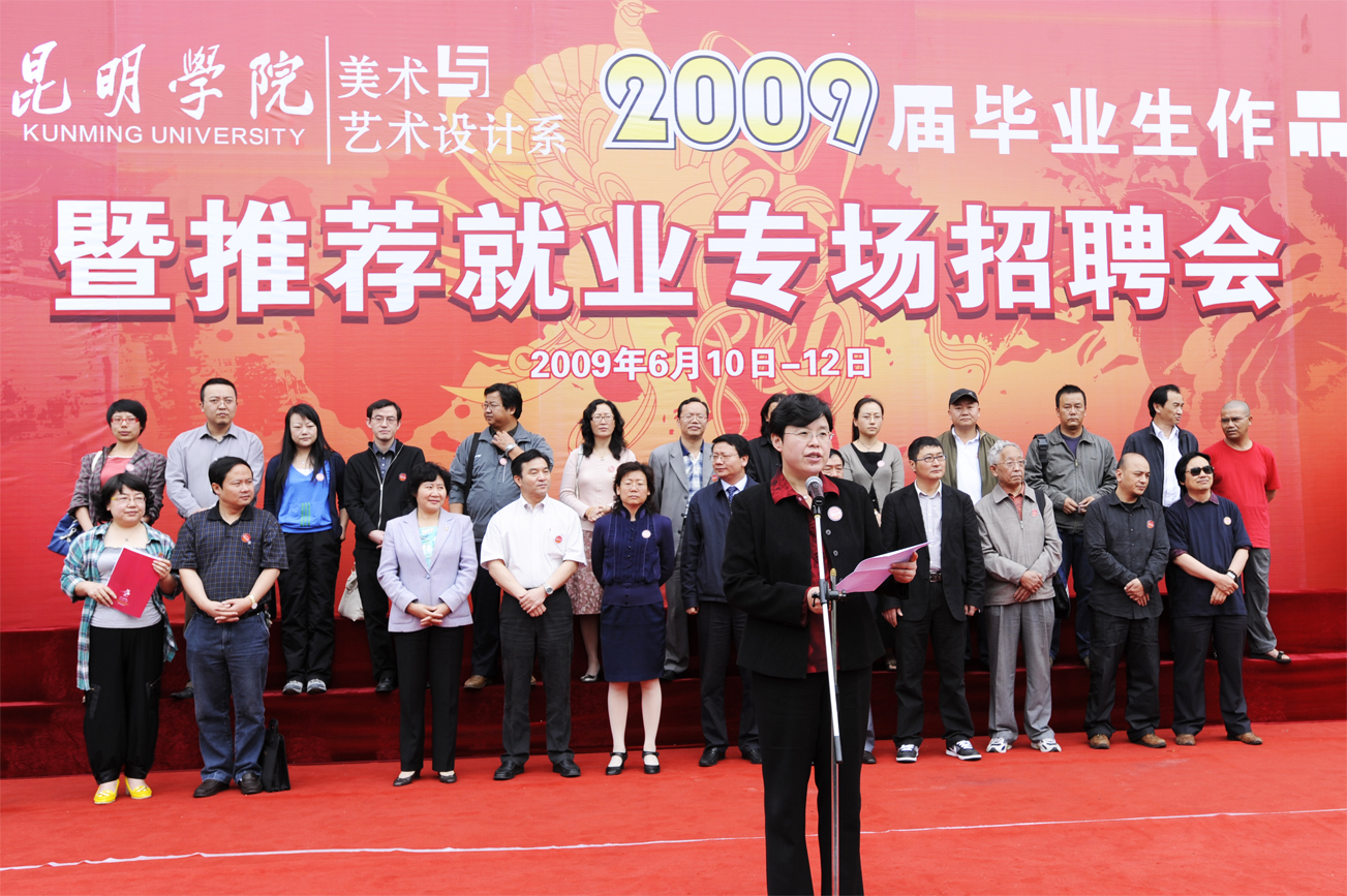 美术与艺术设计系以深入学习实践科学发展观为目标,在中华人民共和国成立60周年到来之际,于6月10日-12日,在云南省科学技术馆成功举办了以“加强特色专业建设、服务区域经济发展”为主题的09届毕业生设计作品展暨推荐就业专场招聘会。