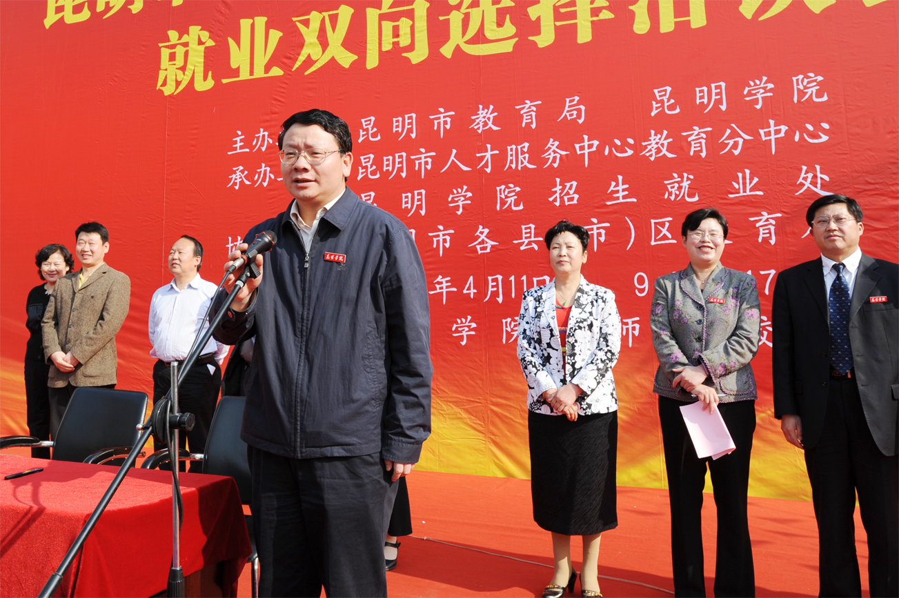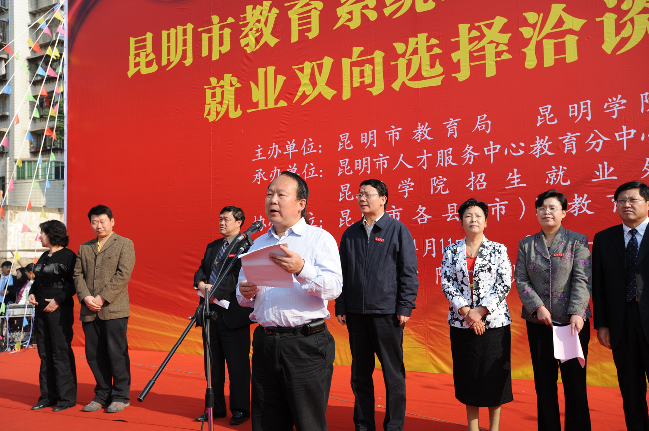 4月11日,由昆明市教育局、德赢VWIN官方网站共同举办的“昆明市教育系统2009年毕业生就业双向选择洽谈会”在我院昆师路校区隆重举行。云南省高校工委副书记陶晴,昆明市人大常委会副主任杨丽,德赢VWIN官方网站院长陈世波,学院党委副书记孙勇,副院长熊晶、罗明东和省教育厅学生处、省大中专毕业生就业服务中心,昆明市教育局、市人事局、市人才服务中心、昆明市各县(市)区教育局、人才教育分中心等相关部门领导出席洽谈会。