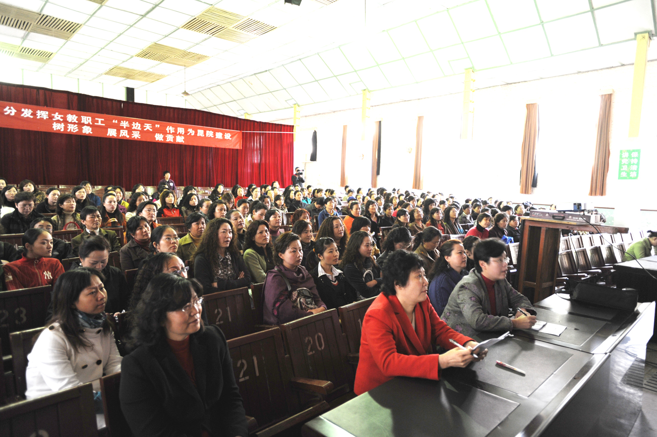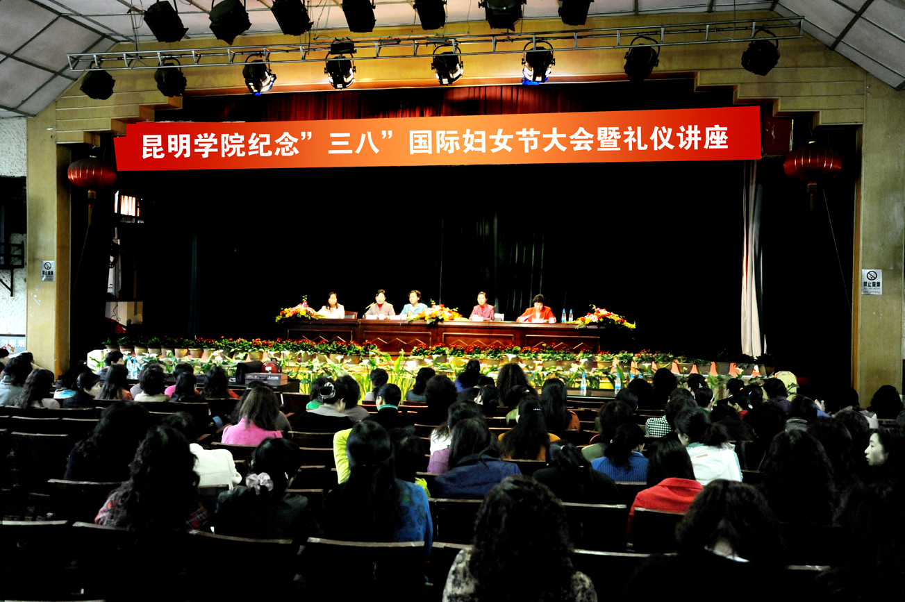 3月5日上午,我院在昆师路校区大礼堂举行了德赢VWIN官方网站2009年纪念“三八“国际劳动妇女节大会暨礼仪讲座。学院李媛芬副书记、熊晶副院长以及全院200多名女教职工参加了会议。会议由李媛芬副书记主持。会议邀请到云南艺术学院副院长潘红教授为大家做了“现代女性形象礼仪”的专题讲座。潘教授通过精彩讲授及大量图片的展示,为我们指明了现代女性在工作、生活中如何做到自信、优雅、智慧并重的秘诀,鼓励大家通过内在的文化和修养,成就外在优雅、自信的形象。