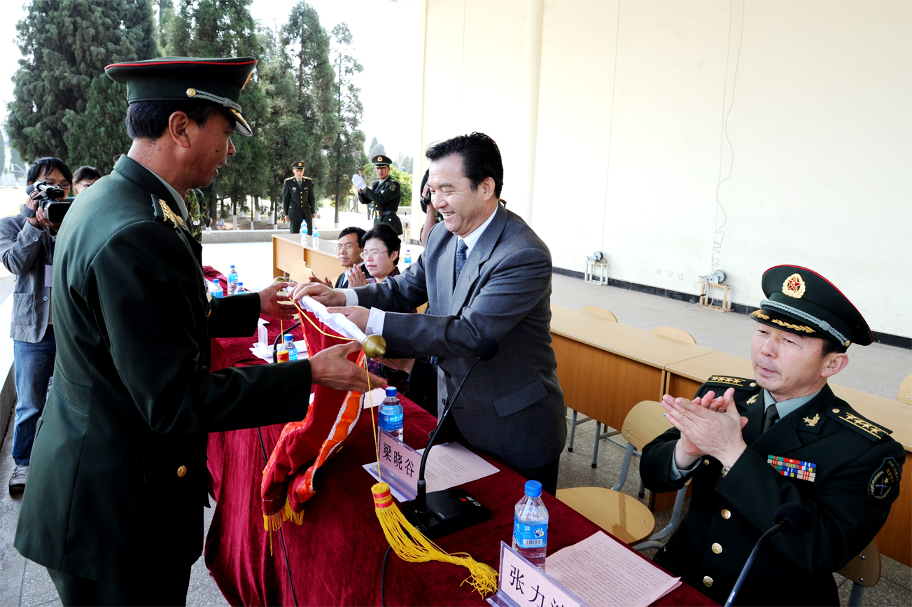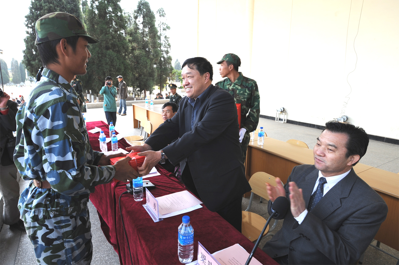 昆明陆军学院副院长张力波大校代表陆军学院作了讲话;我院副院长熊晶在会上宣读军训优秀学生表彰决定;党委副书记孙勇为军训优秀学生颁奖、向军训教官赠送纪念品;党委书记梁晓谷代表德赢VWIN官方网站向昆明陆军学院赠送锦旗。