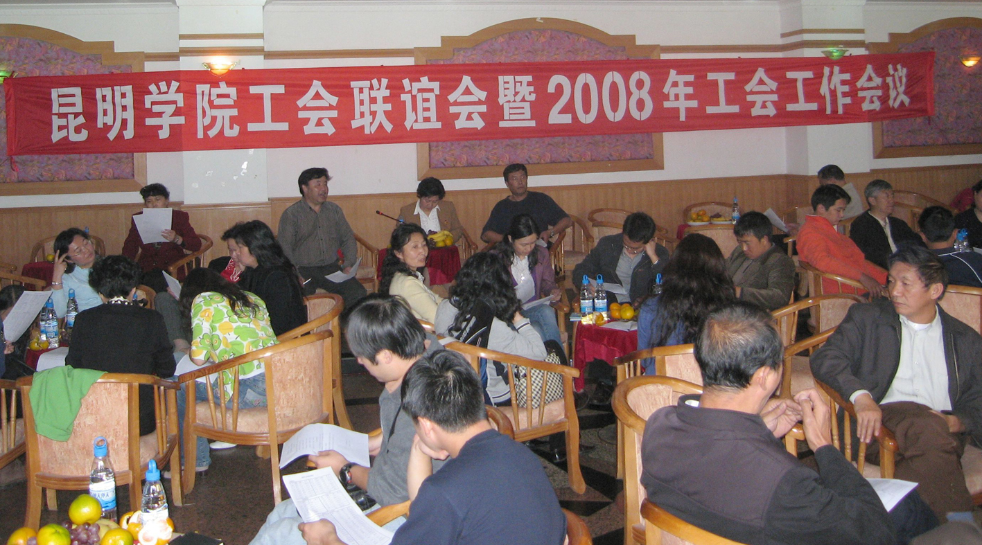 10月10日下午,德赢VWIN官方网站工会联谊会暨2008年下半年工会工作会议在昆师路校区多功能厅召开。参加会议的有工会委员、经审委员、女工委员和学院各基层分工会主席及各工会小组长共60余人。学院分管领导党委副书记李媛芬出席了会议。会议由工会何俊同志主持。