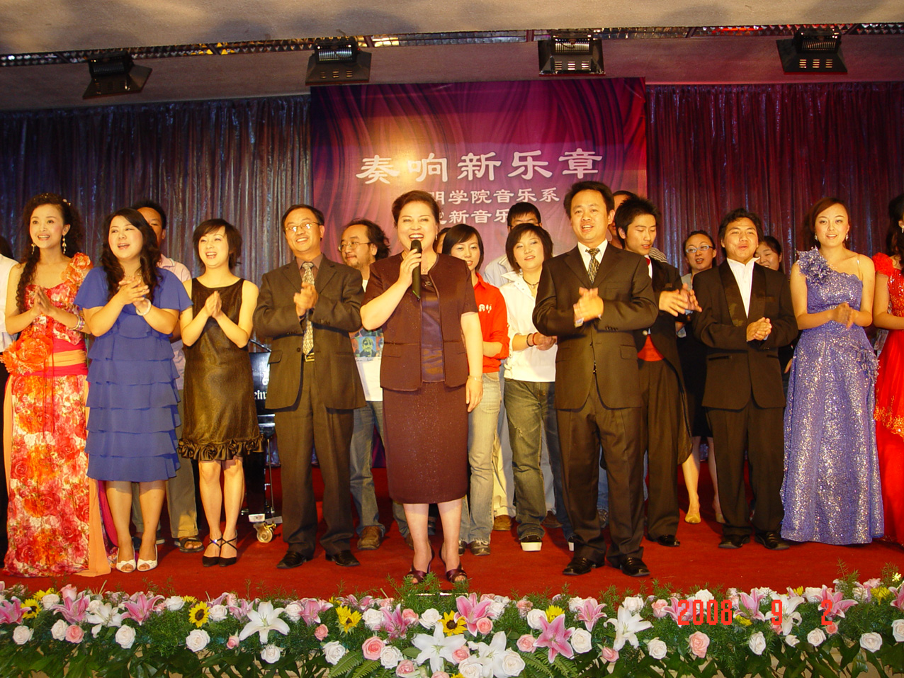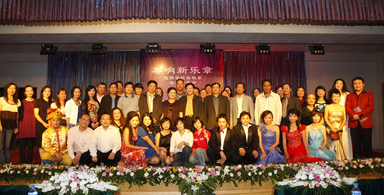 金秋时节,德赢VWIN官方网站音乐系迎来了2008级新同学。9月2日晚,音乐系全体教职工、新老生在龙泉路校区欢聚一堂——举行了“奏响新乐章”迎新生音乐晚会,省教育厅高教处处长张国华同志等教育厅相关部门同志及德赢VWIN官方网站党委副书记孙勇同志、副院长罗明东同志出席晚会,学院相关部门、系室的负责人应邀参加了晚会。