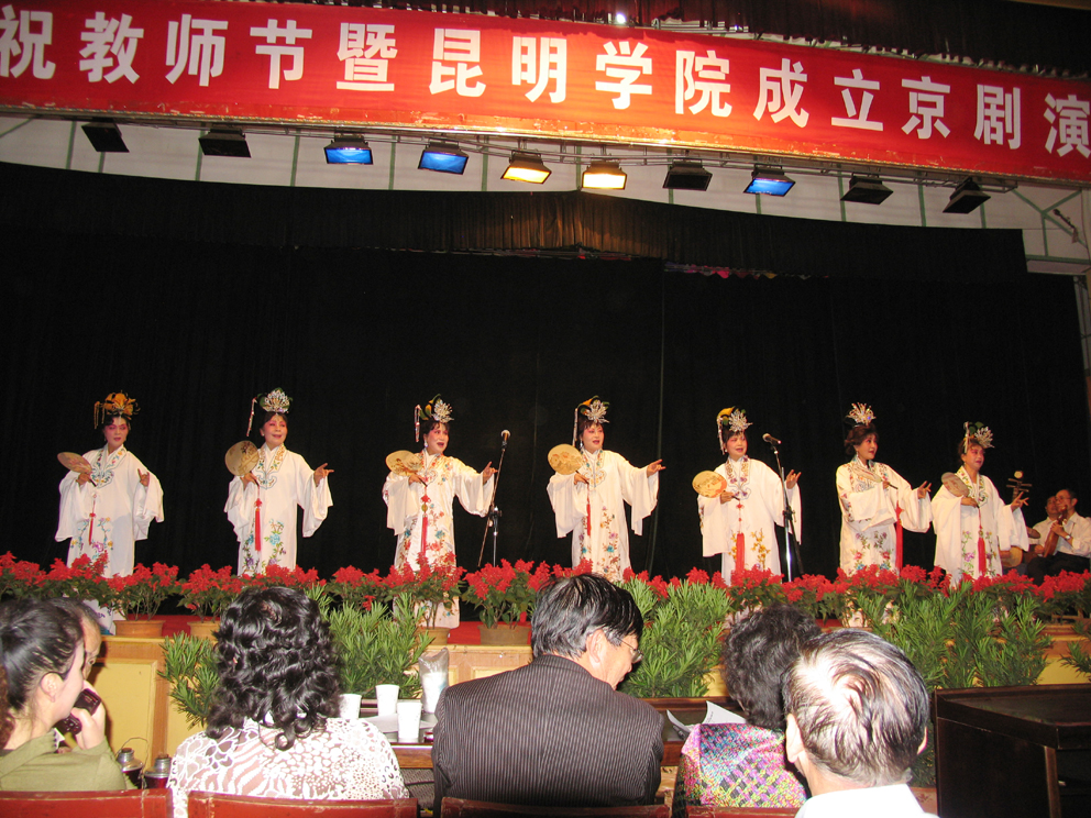 为丰富师生校园文化生活,展示高雅艺术进校园,弘扬京剧艺术国粹,在庆祝第24个教师节、迎中秋、庆国庆的喜庆日子里,9月12日下午,我院侨台联谊会组织京剧爱好者及学前系部分学生在昆师路校区大礼堂,向全院侨胞、台胞以及广大师生献上了一台精彩动听的京剧演唱会。