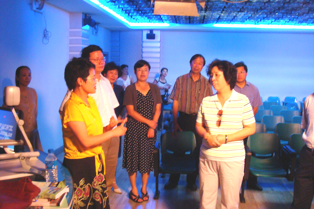在旅游系模拟导游实验室,陈副部长听取并观看了旅游系主 任窦志萍教授对模拟导游课程设计的介绍和演示。