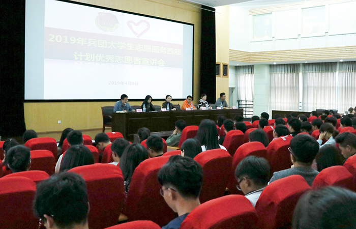 为进一步深化实施兵团大学生志愿服务西部计划项目,引导和鼓励更多的优秀高校毕业生参加兵团大学生志愿服务西部计划。4月8日,德赢官网在惟行楼1501报告厅举办了“2019年兵团大学生志愿服务西部计划优秀志愿者宣讲会”。此次宣讲会由团委副书记沈嘉主持,各学院近200名毕业生代表参加。