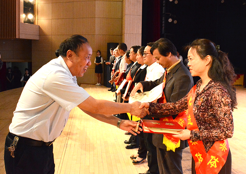 陈永明书记希望,各位劳模先进,珍惜荣誉,发扬优良传统,保持良好作风,始终做坚定理想信念的模范和教书育人的先锋,做学校改革发展的中坚,发扬好劳模精神、劳动精神和工匠精神,当好时代的领跑者、学校改革的先锋。希望学校各级组织、把劳模、先进、楷模挖掘好、宣传好、爱护好,为他们营造干事创业的良好环境,强化德者有得的价值导向,形成尊重楷模、崇尚劳动的良好氛围,向全校教职工充分展示他们拼搏奉献、锐意进取、报效祖国、服务社会的时代风采,营造尊重劳动、尊重知识、尊重人才、尊重创造的良好氛围,全方位提升教师素质,努力造就知识型、技术型、创新型教职工队伍。