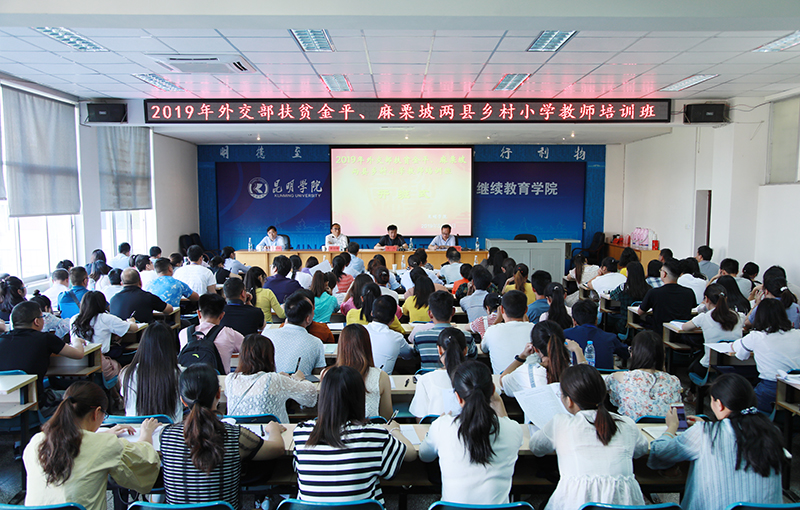 5月13日,2019年外交部扶贫金平、麻栗坡两县乡村小学教师培训班在德赢VWIN官方网站继续教育学院开班。云南省人民政府外事办公室副主任夏剑峰,德赢VWIN官方网站副校长王凡等领导出席开班式。来自金平、麻栗坡两县的100名乡村小学教师参加了开班式。