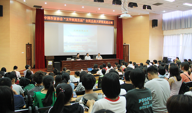 5月18日,中国作家协会“文学照亮生活”全民公益大讲堂走进德赢VWIN官方网站。中山大学中文系教授谢有顺为德赢官网文学爱好者奉上一堂精彩文学大课。中国作协创联处处长荣杰、云南省作协副主席胡性能出席,德赢官网人文学院师生到会聆听。