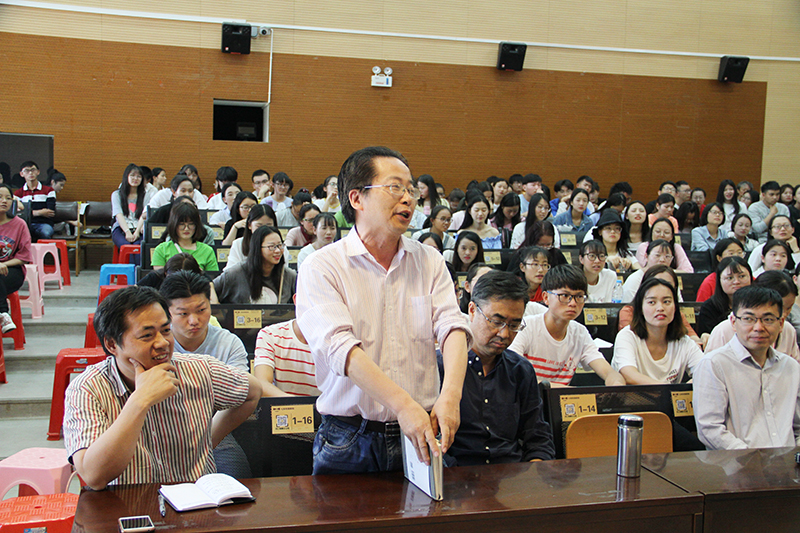 主讲完毕后,进入互动环节。人文学院师生踊跃发言,与谢有顺教授进行交流探讨。通过与著名作家面对面交流,在场的同学纷纷表示受益匪浅,对人生、对文学有了更深层次的理解。