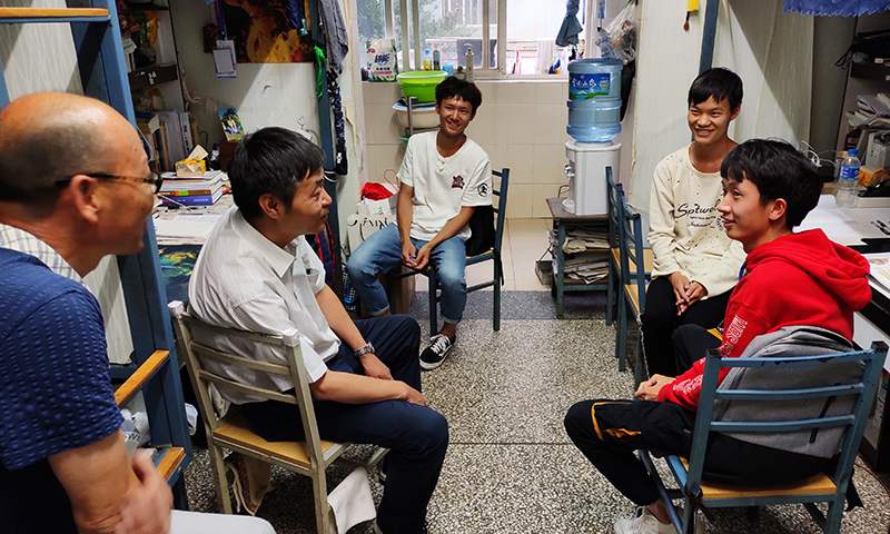 527日晚,副校长王凡带领扶贫办、团委相关老师和外国语学院值班教师一起,来到澄明苑外国语学院男生宿舍,与同学们亲切交流,了解学生学习、生活情况。