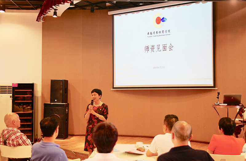 田芙蓉院长向大家介绍了商学院的建设工作,从规划到论证、再到方案的实施,一一列举云南餐饮商学院创办的大事记和两年筹备工作中的点点滴滴。