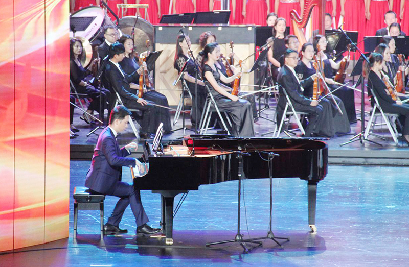 交响合唱音乐会以《序幕 山水的呼唤》《第一篇章 在新中国的怀抱里》《第二篇章 我们的春天故事》《第三篇章 走在美好新时代》《尾声 同心共筑中国梦》五个部分构成。学校音乐舞蹈学院学生分别参加了第一篇章《妈妈教我一支歌》《祖国颂》、第二篇章《爱我中华》、第三篇章《幸福中国一起走》、尾声《追梦的人们》等作品的合唱,青年教师袁瀚担任《山水的呼唤》《在新中国的怀抱里》等作品的钢琴伴奏。