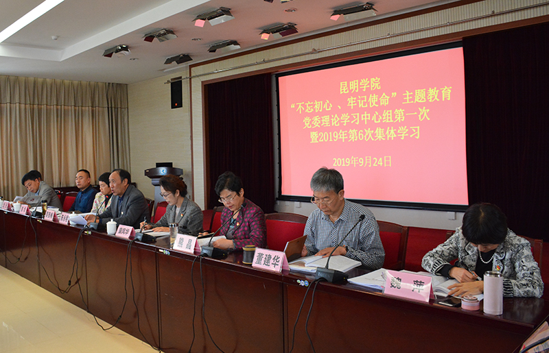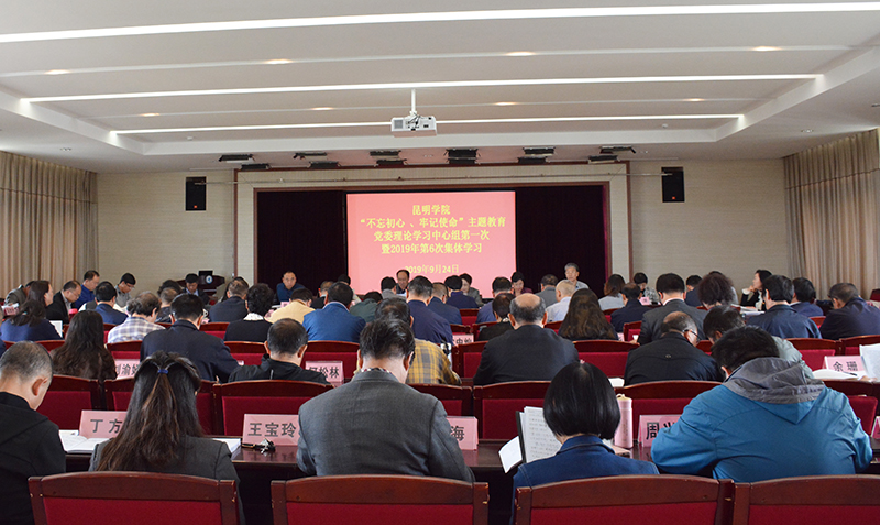 9月24日,学校集中举行“不忘初心、牢记使命”主题教育党委理论学习中心组第一次暨2019年第6次集体学习研讨会。会议以“深入学习贯彻习近平新时代中国特色社会主义思想,重点学习习近平总书记关于教育的重要论述特别是关于高校工作的重要讲话和指示批示精神”为主题,围绕加强党的政治建设、坚定理想信念、牢记宗旨性质、勇于担当作为等重点内容进行专题学习和研讨。
