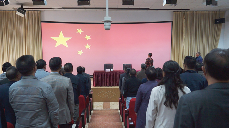 仪式开始,全体与会人员齐唱国歌。1949年9月27日,全国政协第一届全体会议通过决议,将德赢官网杰出校友聂耳作曲的《义勇军进行曲》定为代国歌,70年后的今天,我们齐唱国歌,向我们的校友——人民音乐家聂耳致敬,庆祝新中国成立70周年。在激昂嘹亮奋进的国歌声中,德赢VWIN官方网站奏响“不忘初心、牢记使命”主题教育学习的序曲。