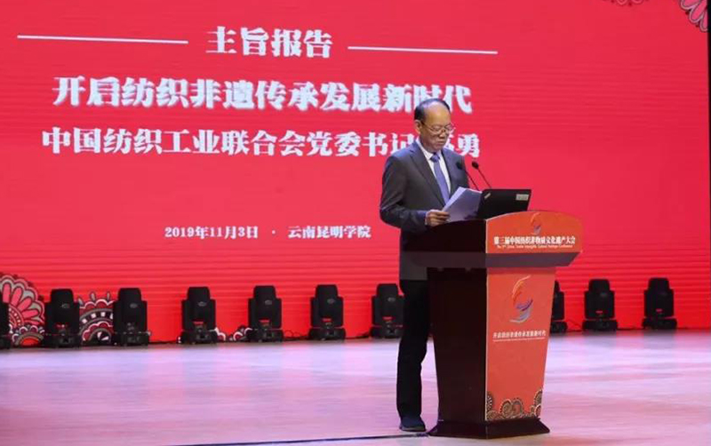 随后,中国纺织工业联合会党委书记高勇作了《开启纺织非遗传承发展新时代》的大会主旨报告。围绕大会主题,中国社会科学院荣誉学部委员、中国民俗学会理事长刘魁立,中国艺术研究院研究员、博士、中国艺术人类学学会刺绣专业委员会主任李宏复,清华大学美术学院教授、博士生导师贾京生,中国时装设计“金顶奖”获得者、艺之卉时尚集团(深圳)有限公司董事长赵卉洲,内蒙古科右中旗人大常委会党组书记、主任、科右中旗蒙古族刺绣产业推进组组长白晶莹,中国旅游协会旅游商品与装备分会秘书长陈斌分别进行了主题演讲。