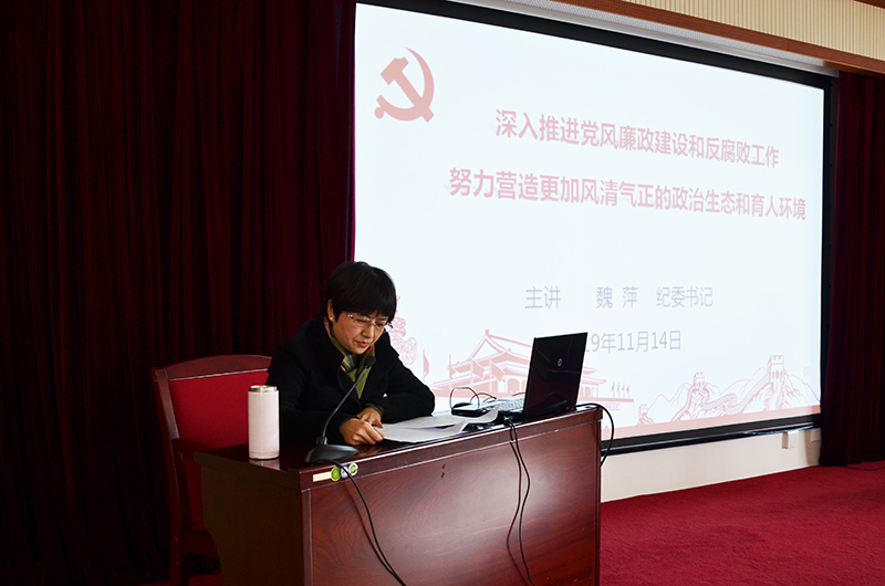 1114日,学校党委委员、纪委书记魏萍在办公楼502报告厅讲授“不忘初心、牢记使命主题教育专题党课,为分管的纪委办(监察处、巡察办)、联系的数学学院、信息工程学院和所在纪检监察审计党支部全体教师党员上专题党课。