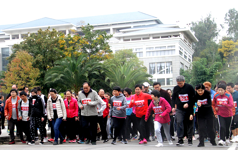 随后,举行了教工环校园跑活动。在陈永明书记、黎素梅校长等校领导的领跑下,近1000余名教工参加了环校园跑,为冬季运动会助力。